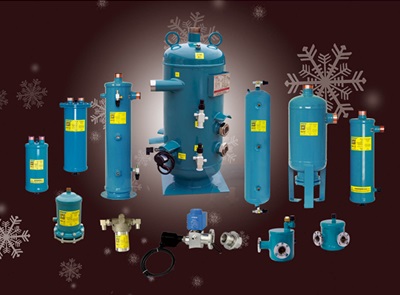 Vessels: oil separator, oil receiver, oil level regulator, liquid lever sensor, filter drier, filter drier shell, filter drier core, suction accumulator, heat exchanger, liquid receiver, muffler.